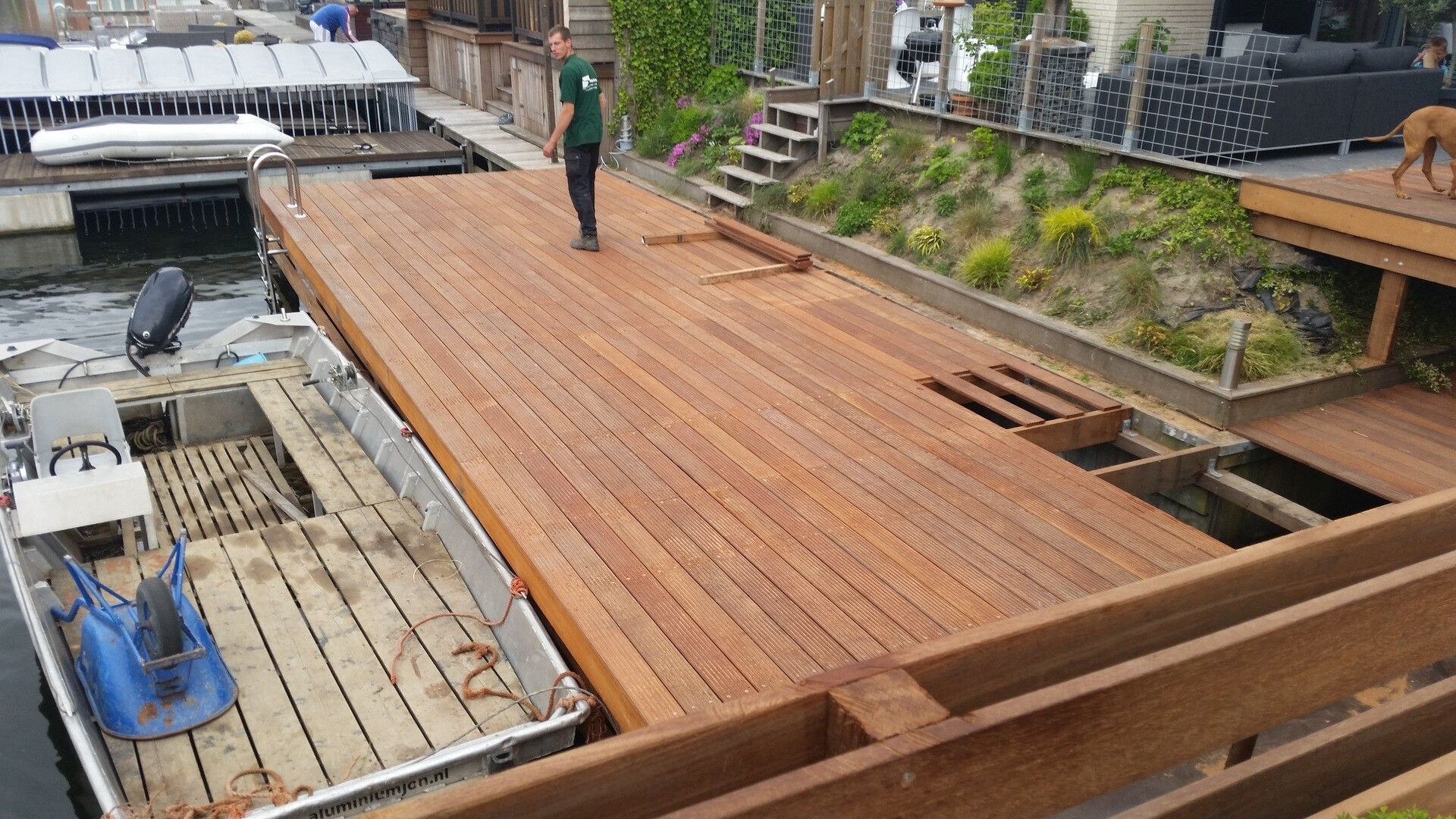 Met het eindresultaat is de klant erg tevreden. De komende 20 jaar hoeft hij zich geen zorgen te maken over deze steiger/vlonder. Het hardhout is enorm duurzaam en zal daarom niet snel vergaan.