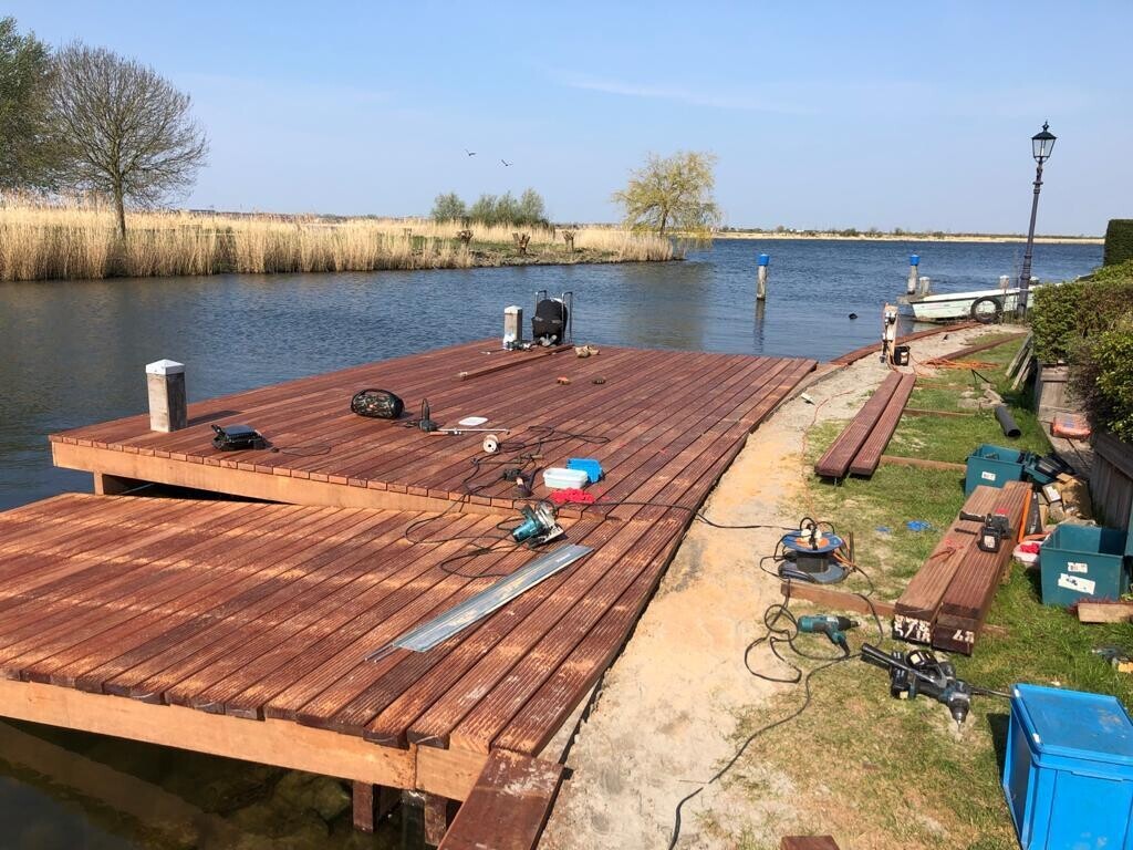 Deze klant in Almere Noorderplassen wilde graag een nieuwe steiger met boothelling laten plaatsen. Deze waren namelijk aan vervanging toe.