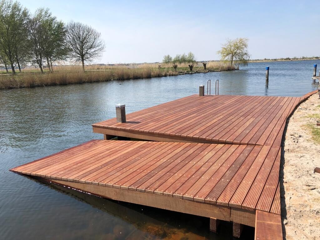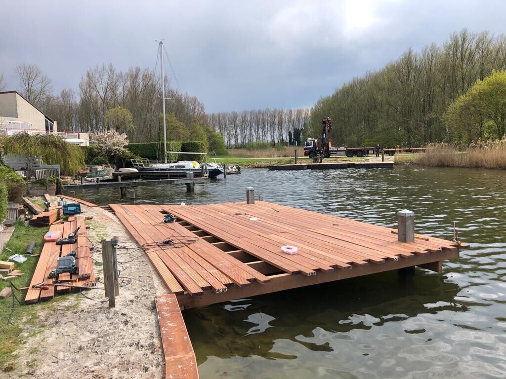We zijn begonnen met het verwijderen van de oude stijger. Daarna hebben we nieuwe damwanden geplaatst. De steiger en boothelling hebben we gecombineerd tot een stijlvol geheel.