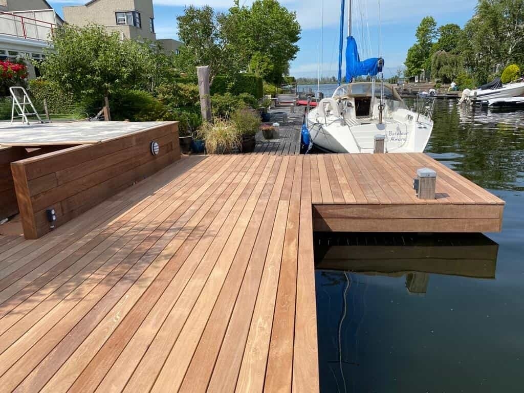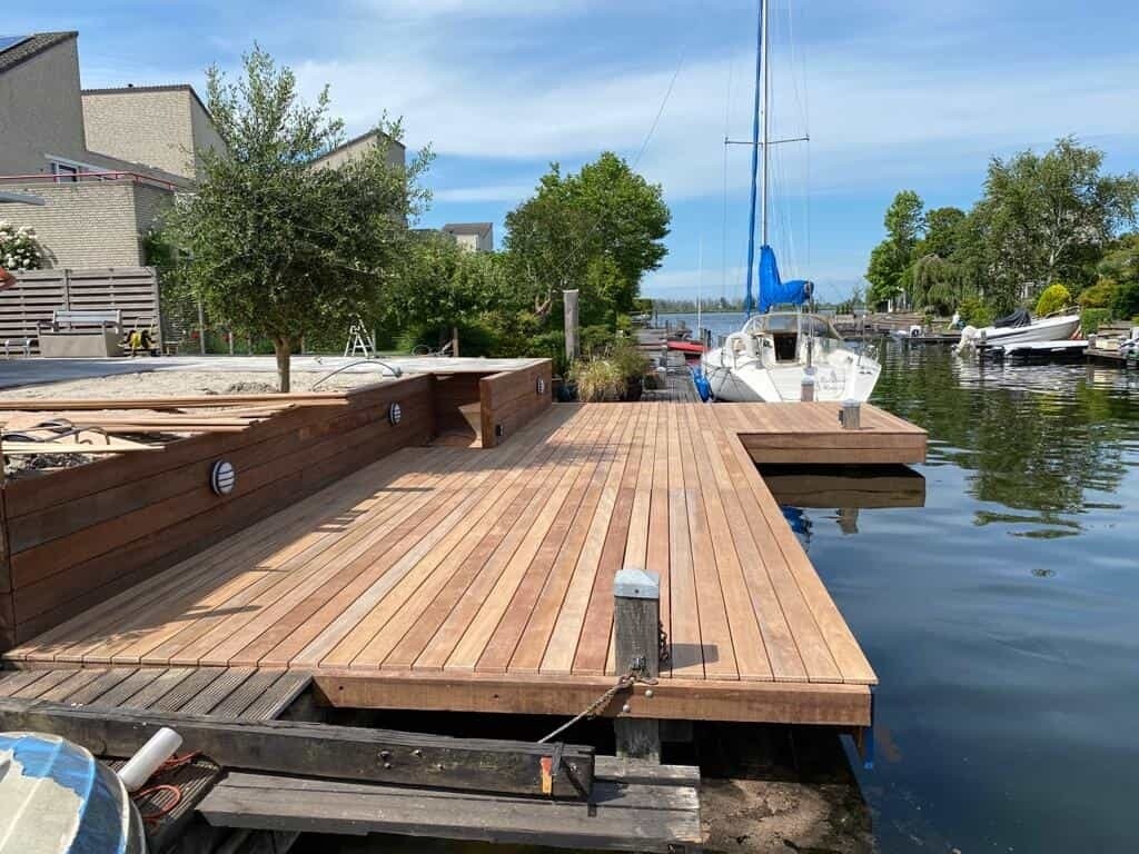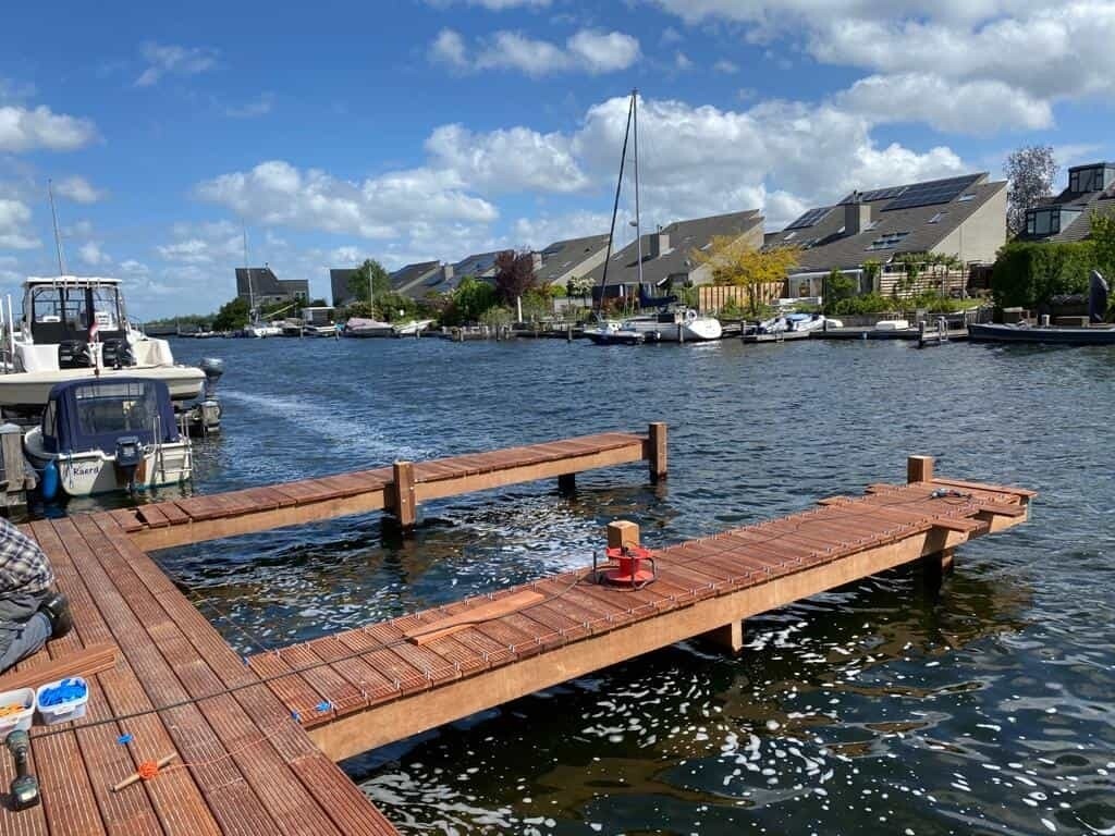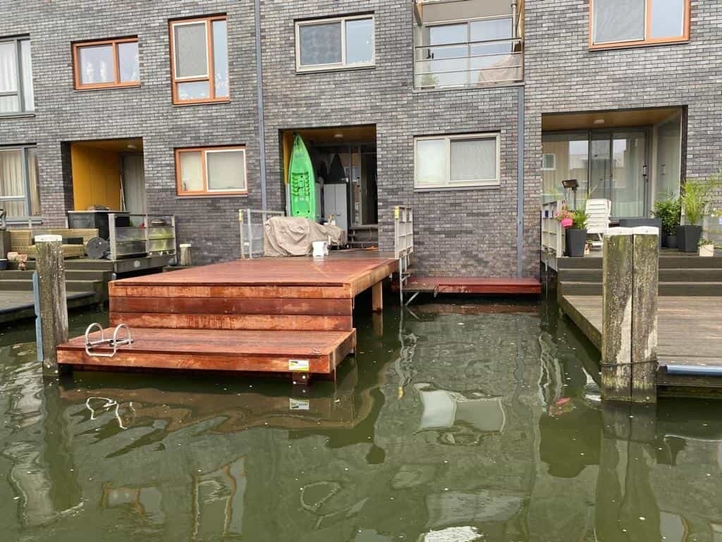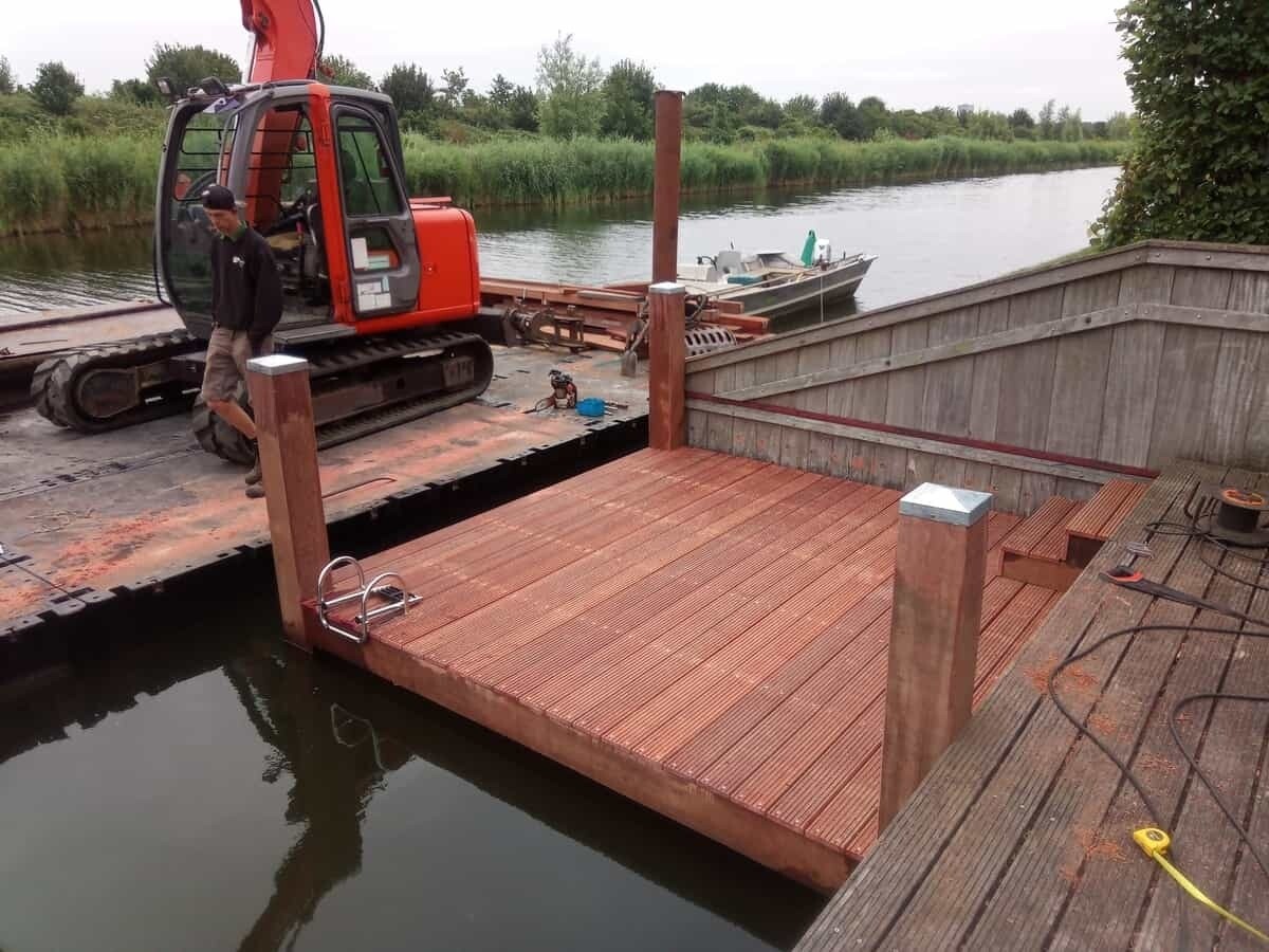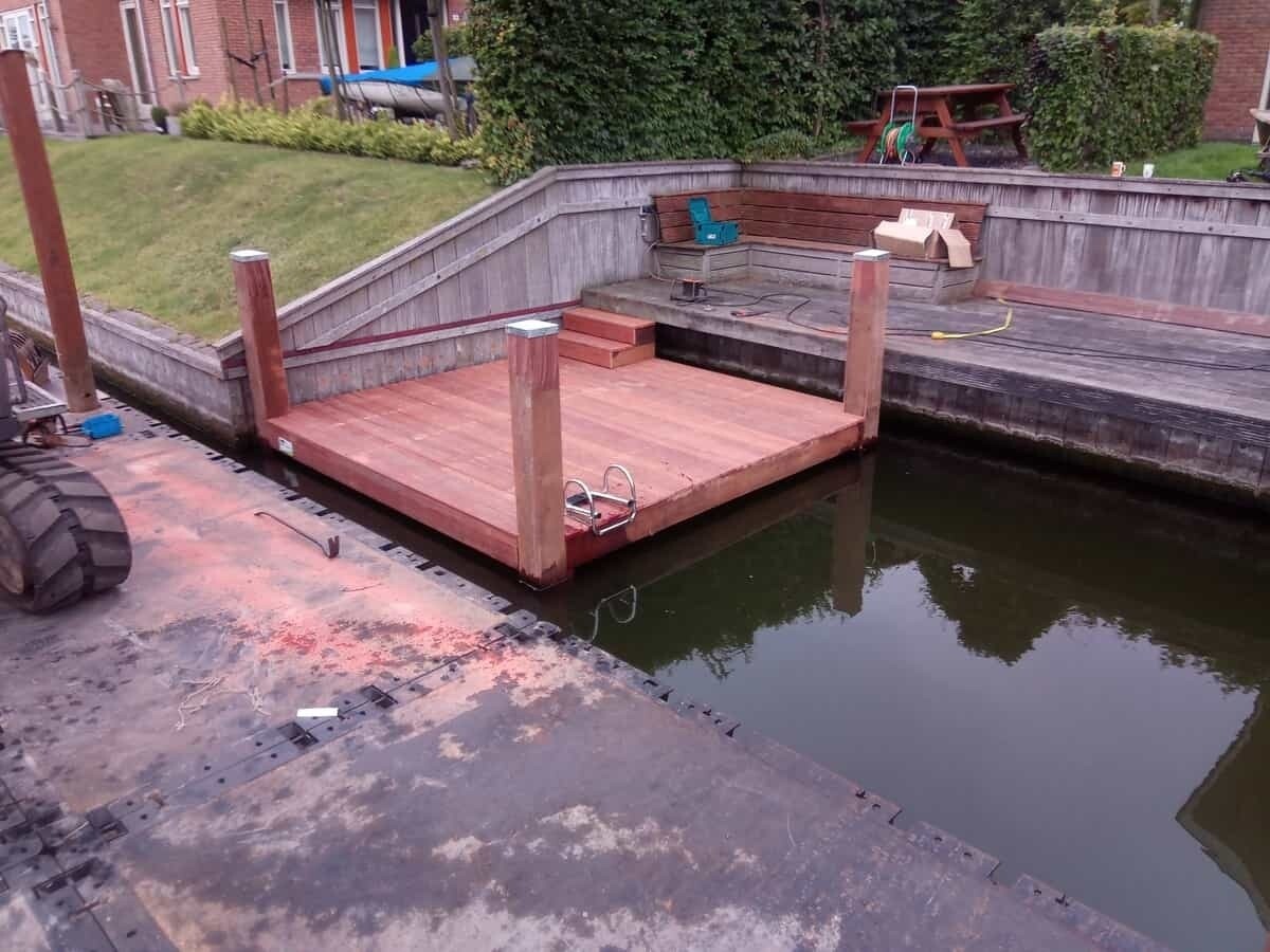 In Almere Noorderplassen zijn veel steigers aan vervanging toe. Zo ook deze waar Slootweg voor is ingeschakeld.