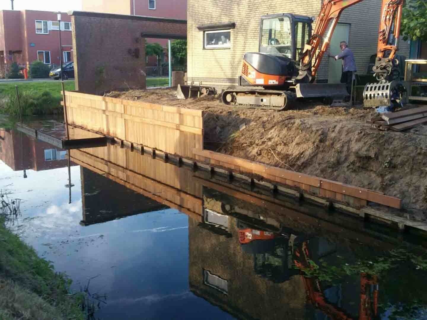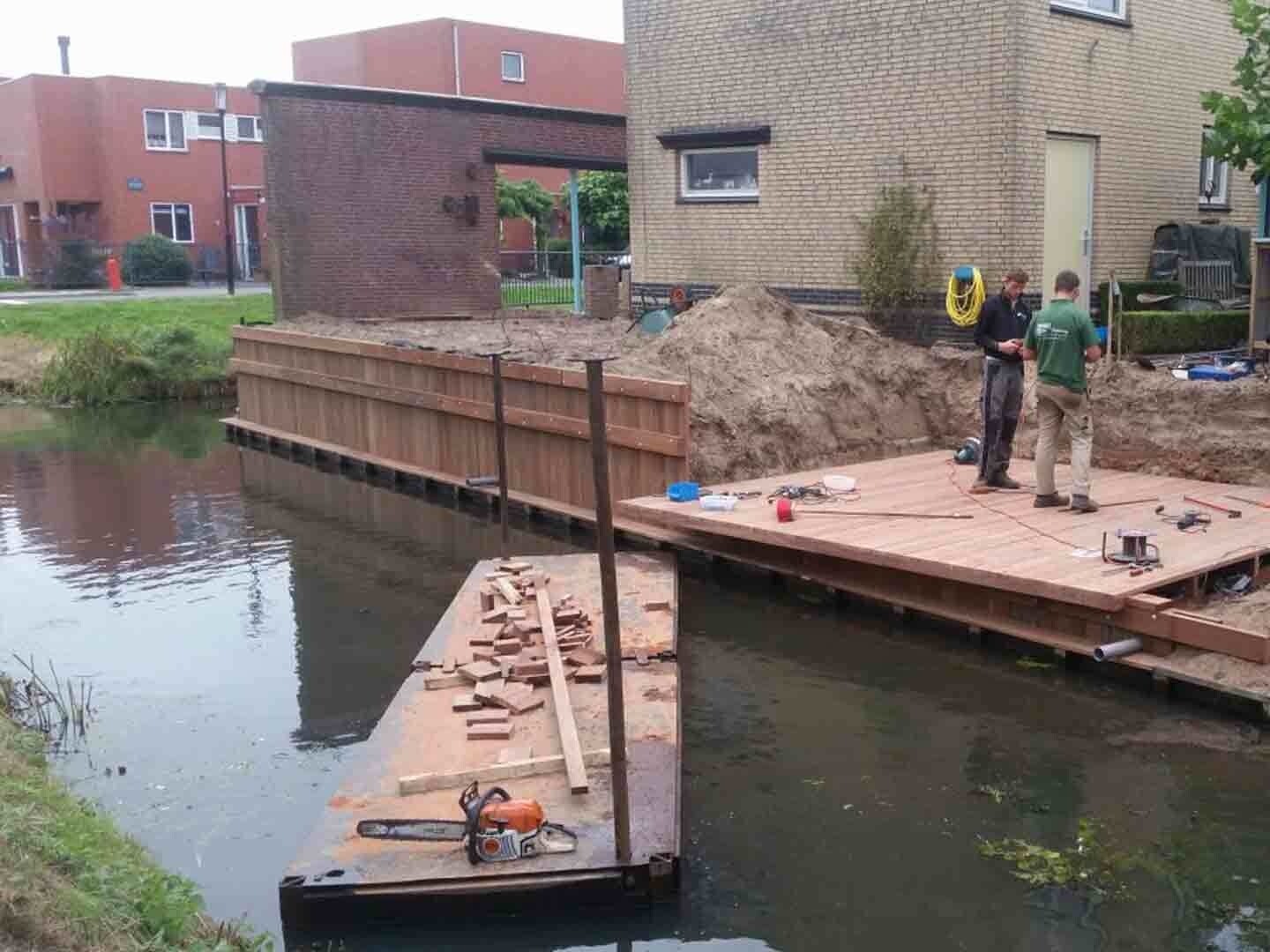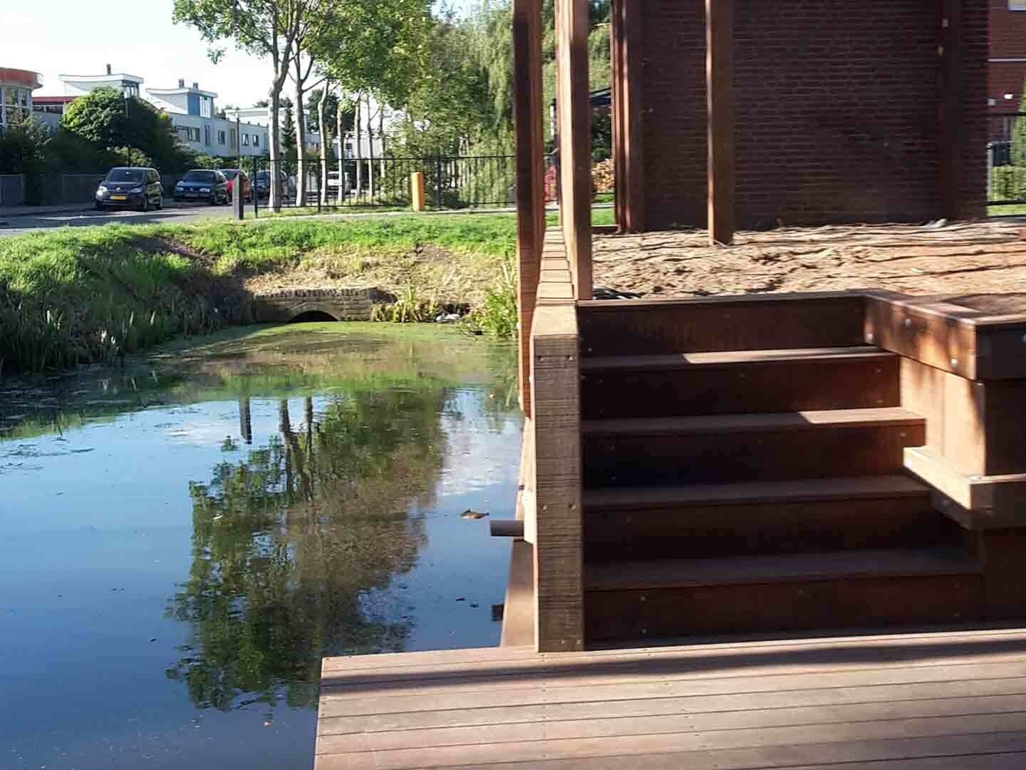 Met het Azobe hout hebben we de damwand, pergola, steiger en schutting gebouwd. Zo heeft alles dezelfde uitstraling en is het nog duurzaam ook. Dit werk kan weer minimaal 20 jaar mee.