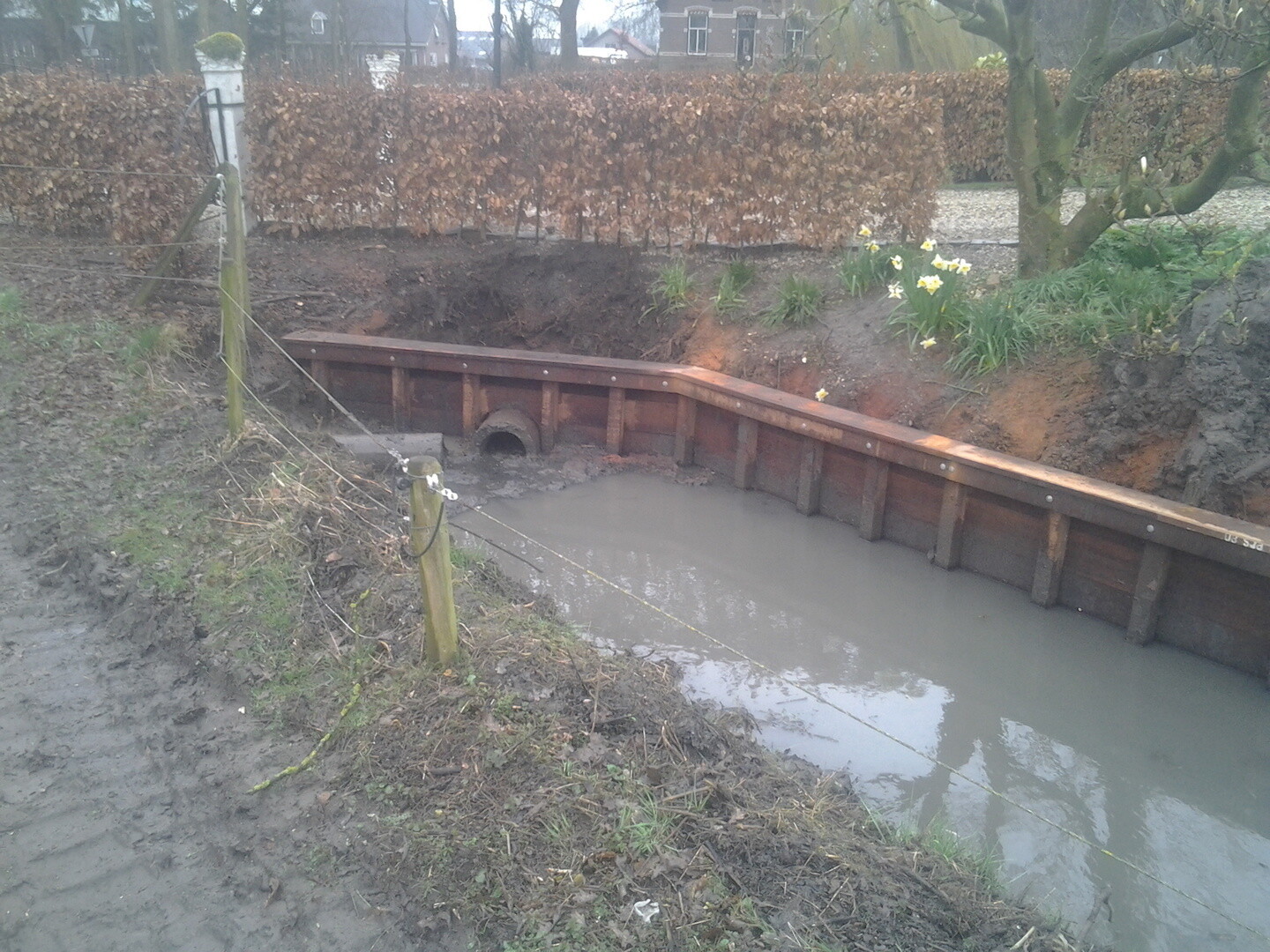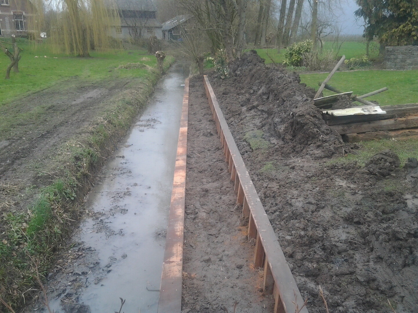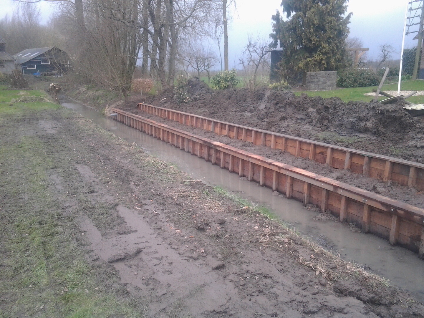 In Buurmalsen had de eigenaar van dit huis een probleem met de oude beschoeiing. Deze was namelijk erg slecht geworden en was niet over de volledige breedte aangelegd. Een taak voor ons om aan te pakken.