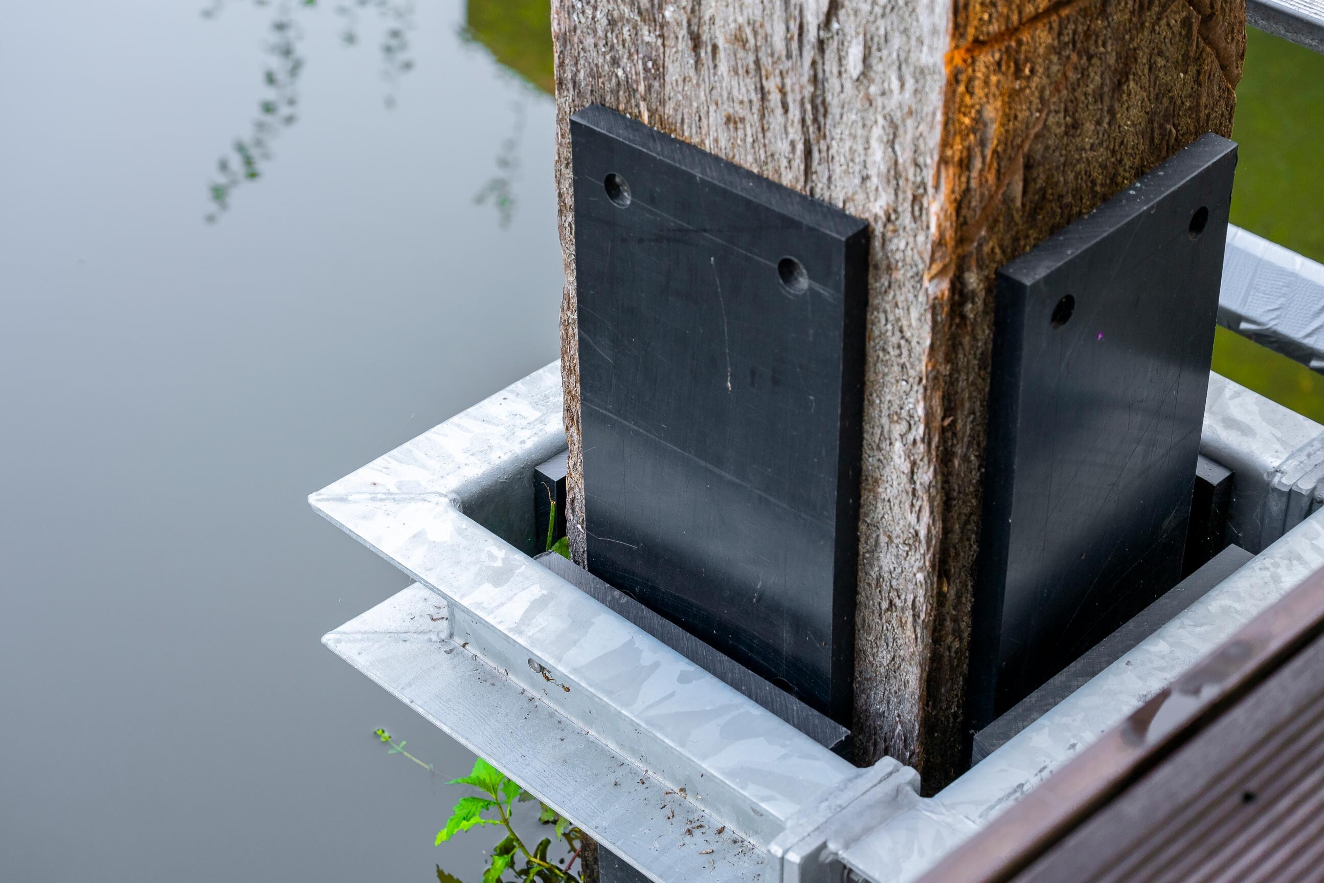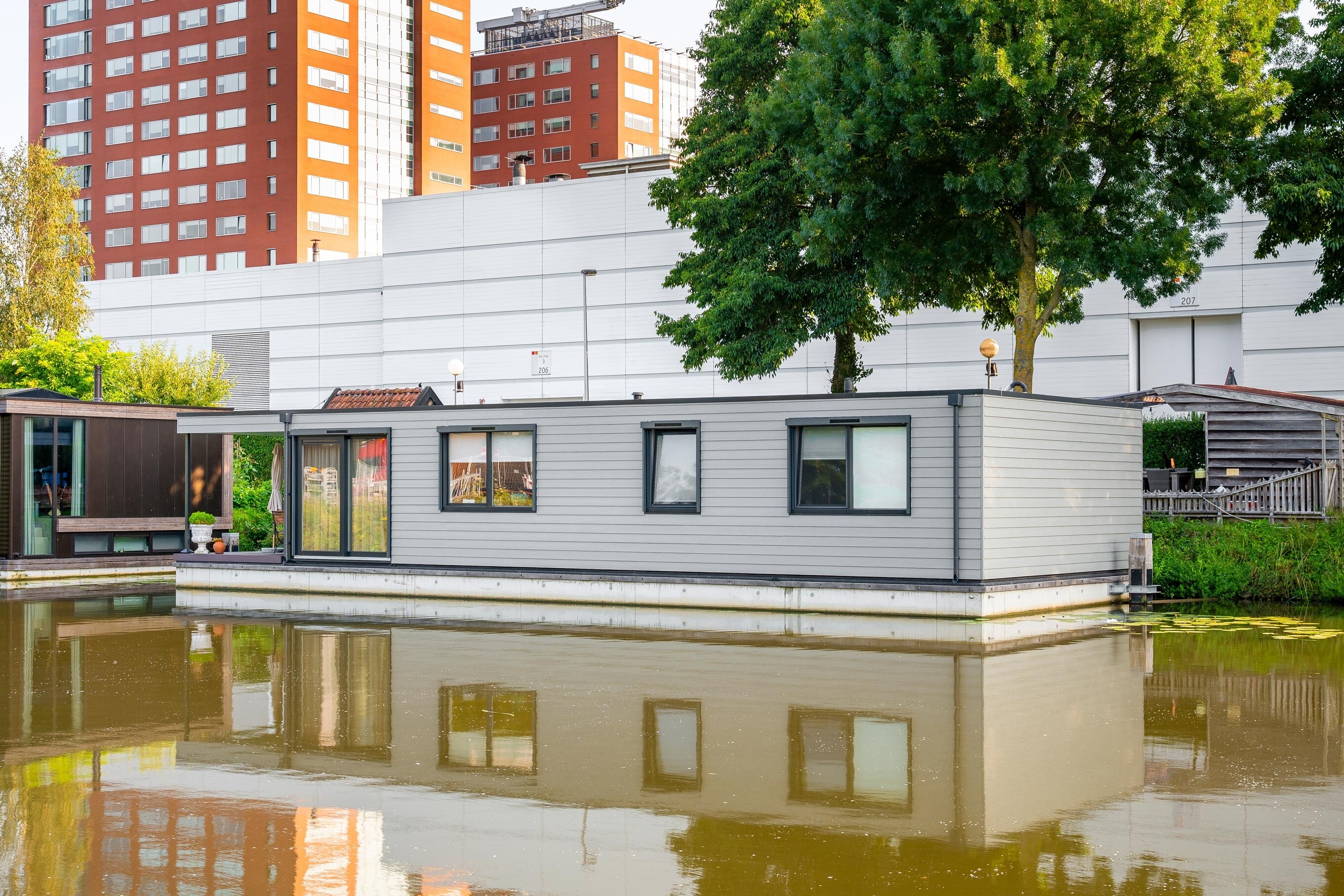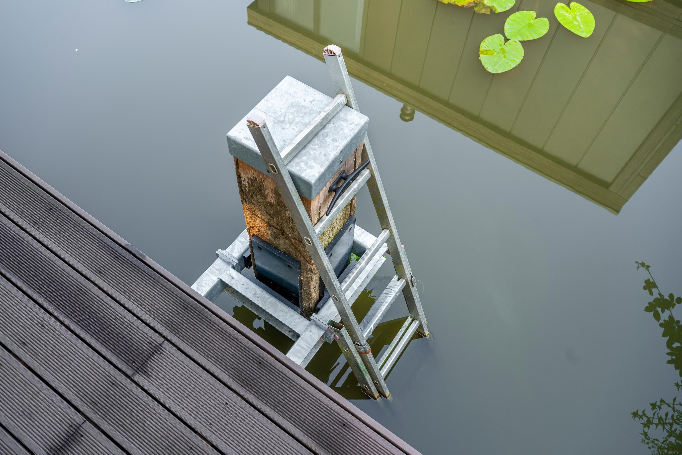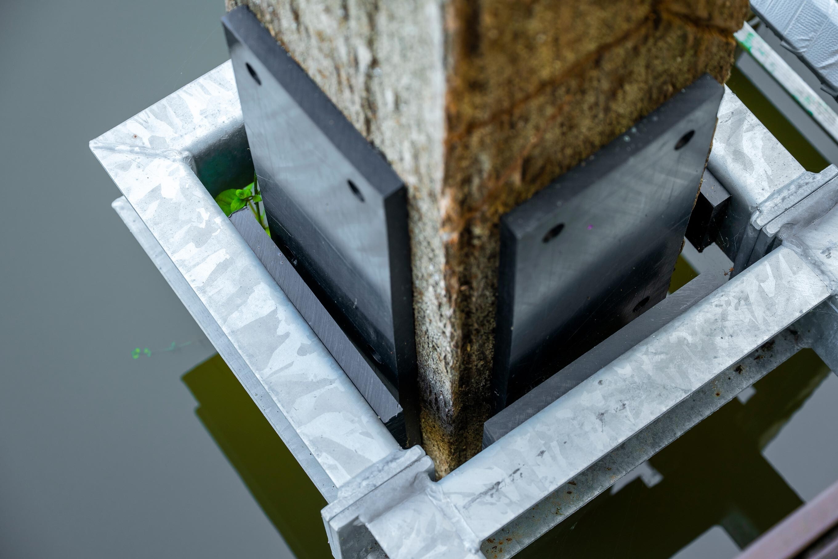 Voor drie nieuwe woonarken in Utrecht hebben we zware meerpalen van 30x30 cm en 10 meter lang geplaatst, inclusief een speciaal geleidesysteem. Dit laat de arken geleidelijk meebewegen met het wisselende waterpeil, zodat je daar binnen nauwelijks iets van merkt. De werkzaamheden zijn volledig vanaf het water uitgevoerd.