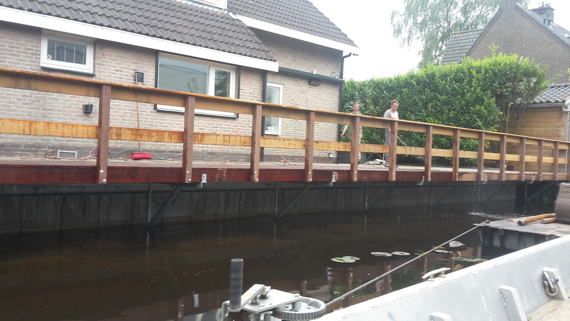 Bij deze klant in Graveland was de wens om een bestaande damwand te vervangen voor een betonnen damwand met daar een hangende vlonder aan. De tuin werd hierdoor groter en het zag er allemaal weer strak netjes uit.