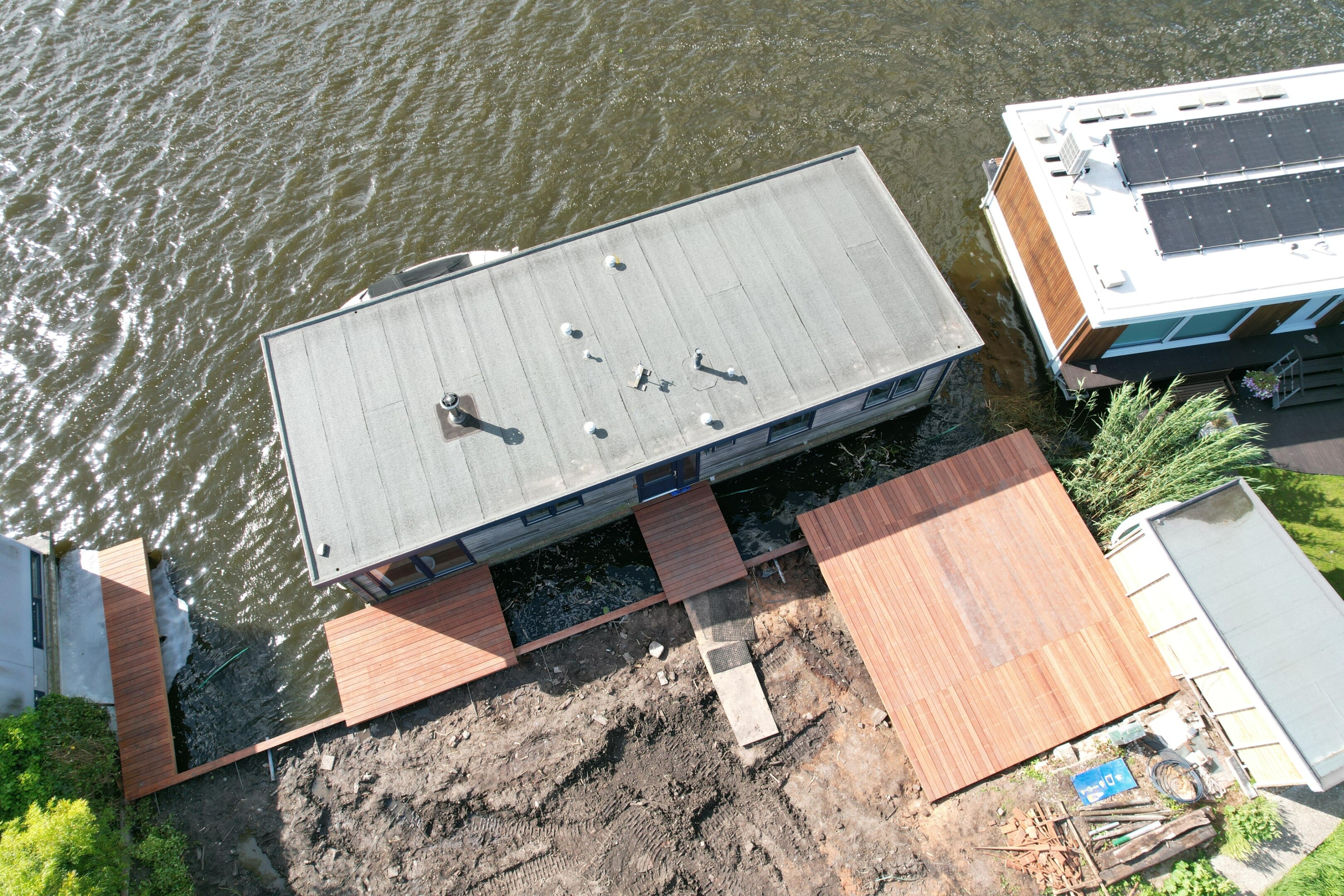 Voor de plaatsing van een nieuwe woonark voerden we een compleet pakket aan werkzaamheden uit. De bestaande kade is volledig vernieuwd en vervangen door een stevige hardhouten damwand. Ook de steigers zijn aangepakt en opnieuw opgebouwd – klaar voor dagelijks gebruik en langdurige belasting.