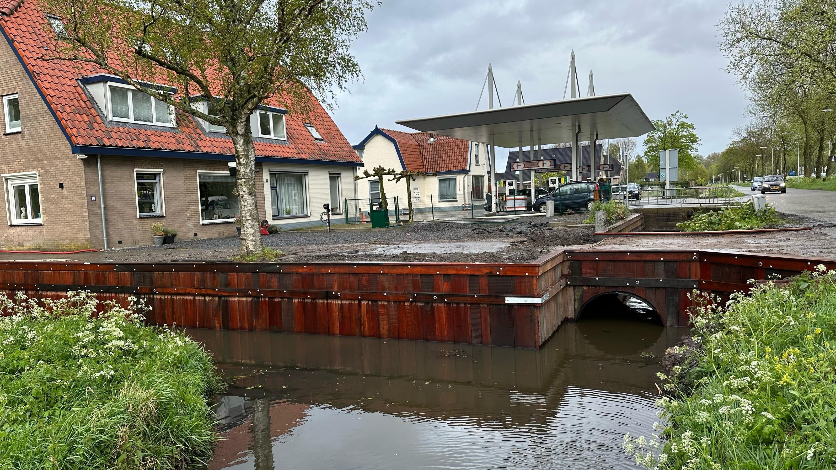 Deze oplossing is niet alleen functioneel, maar ook onderhoudsvriendelijk en toekomstbestendig. Het water kan onder de dam door blijven stromen, terwijl de oeverconstructie weer jaren meekan.
