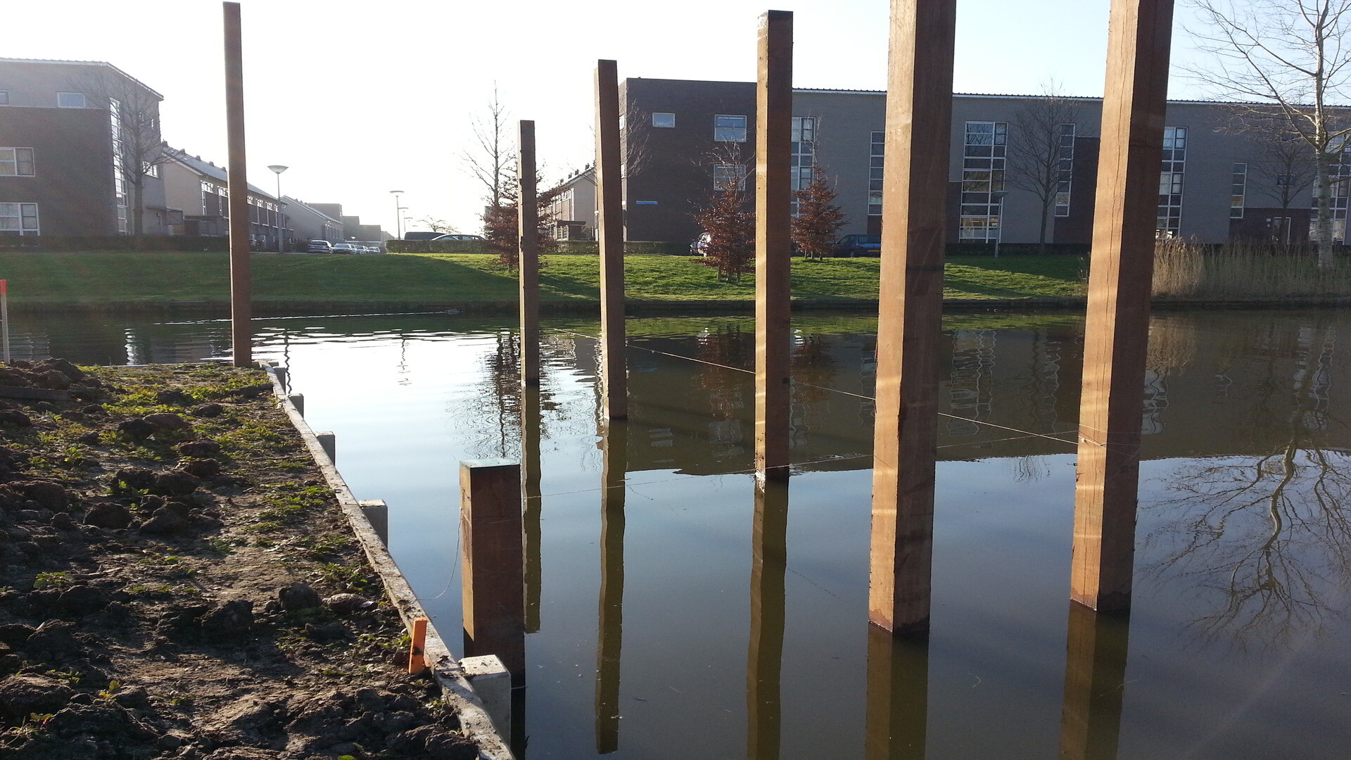 In Almere worden veel nieuwe huizen gebouwd. Het huis van deze klant moest nog gebouwd worden, maar vroeg Slootweg om wel alvast de fundering voor de vlonder / steiger te maken. De klant wilde graag een vlonder met verschillende niveaus en een kleine aanlegsteiger.