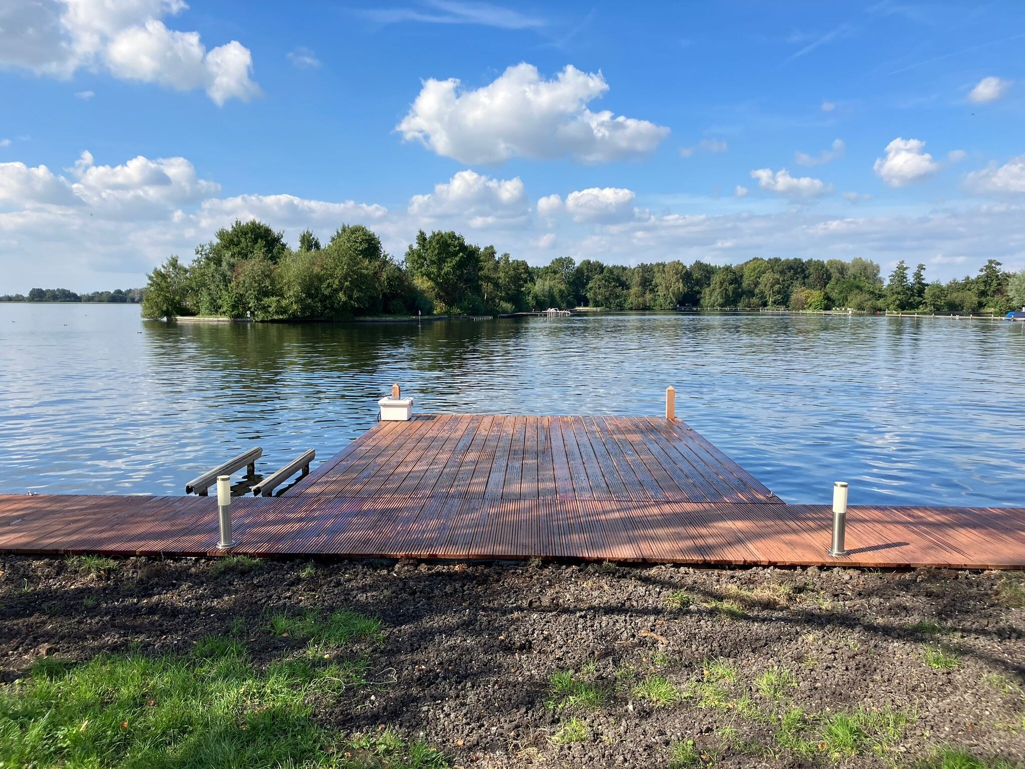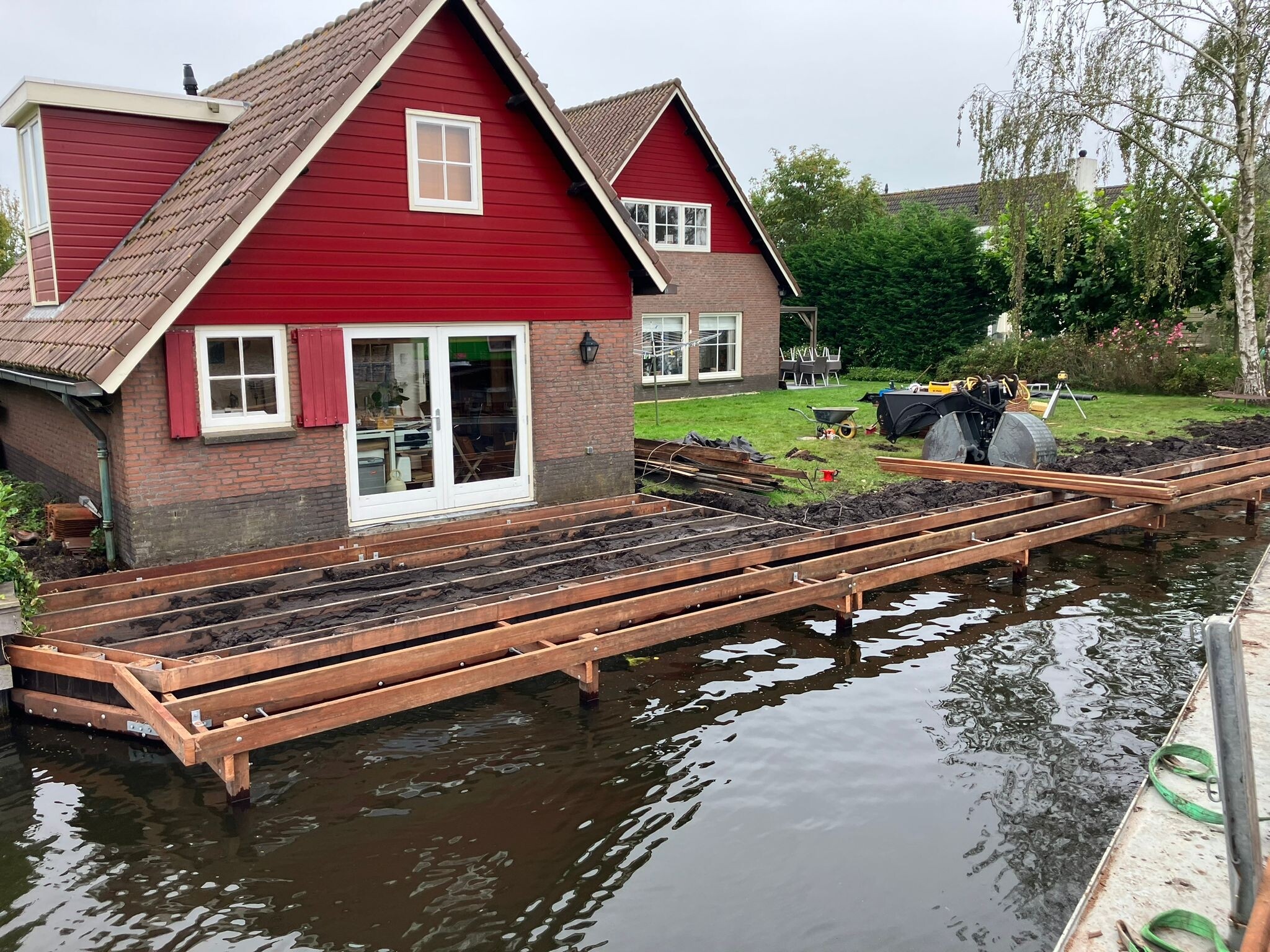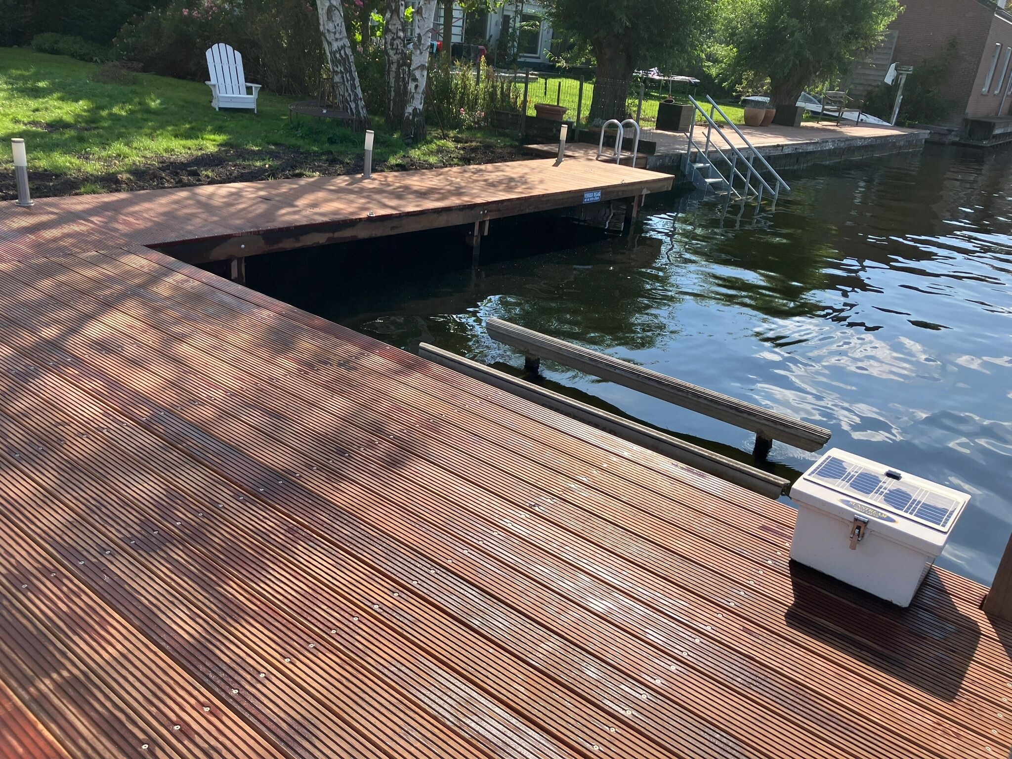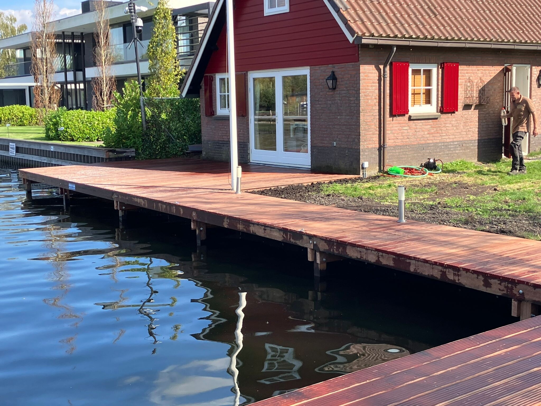 Ook de steigers zijn volledig vernieuwd. We plaatsten hardhouten steigers met eveneens 8 meter lange palen – een combinatie die zorgt voor stabiliteit, uitstraling en duurzaamheid.