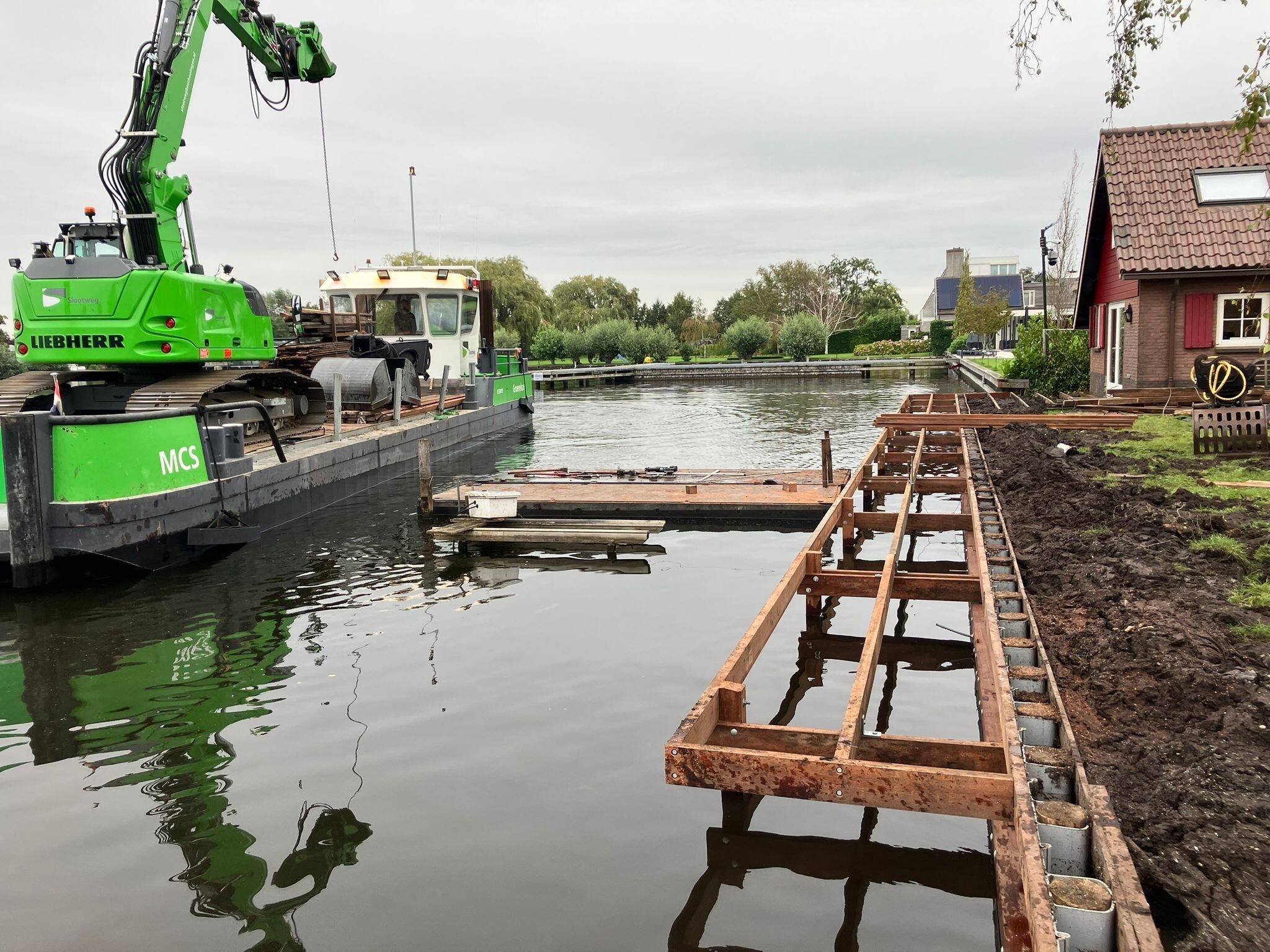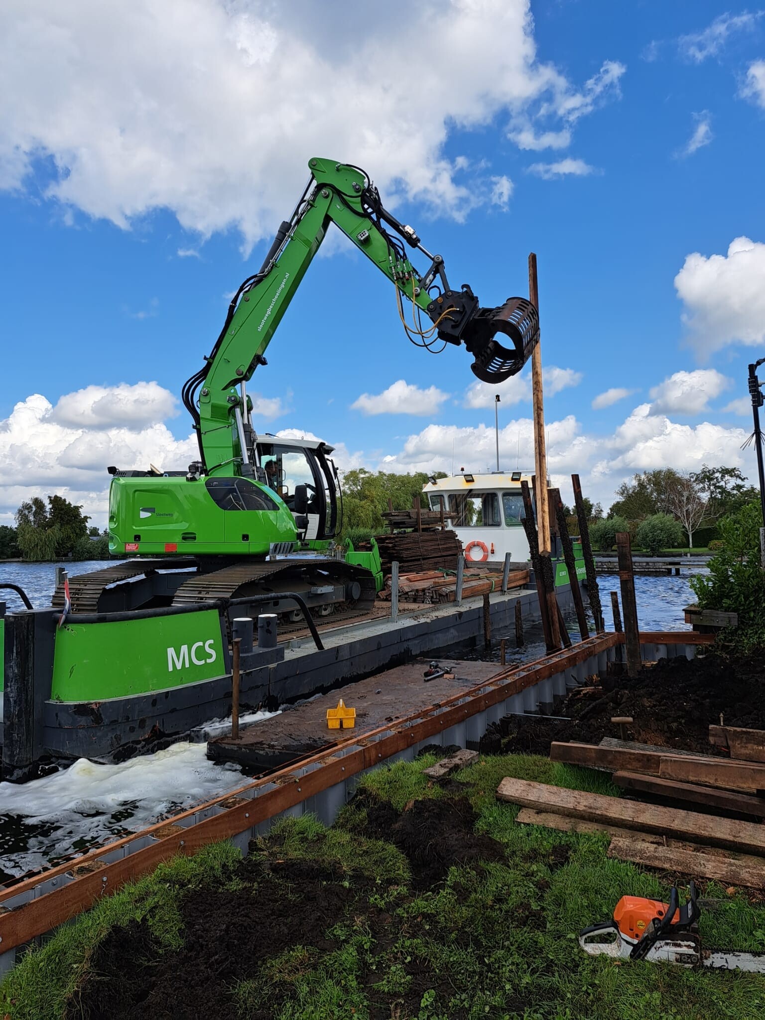 Alle werkzaamheden zijn vanaf het water uitgevoerd, met behulp van pontons en kraanopstellingen. Zo bleef de oever ongestoord en kon het werk efficiënt en veilig worden uitgevoerd.