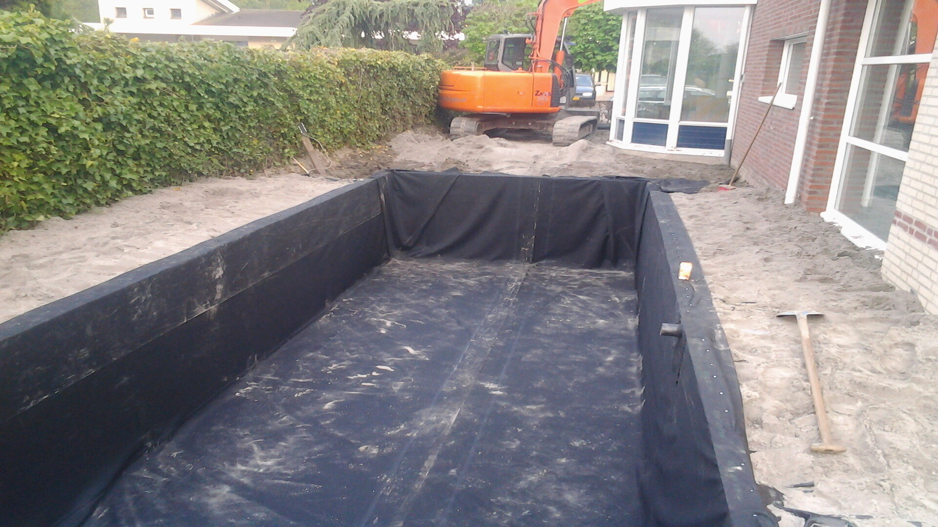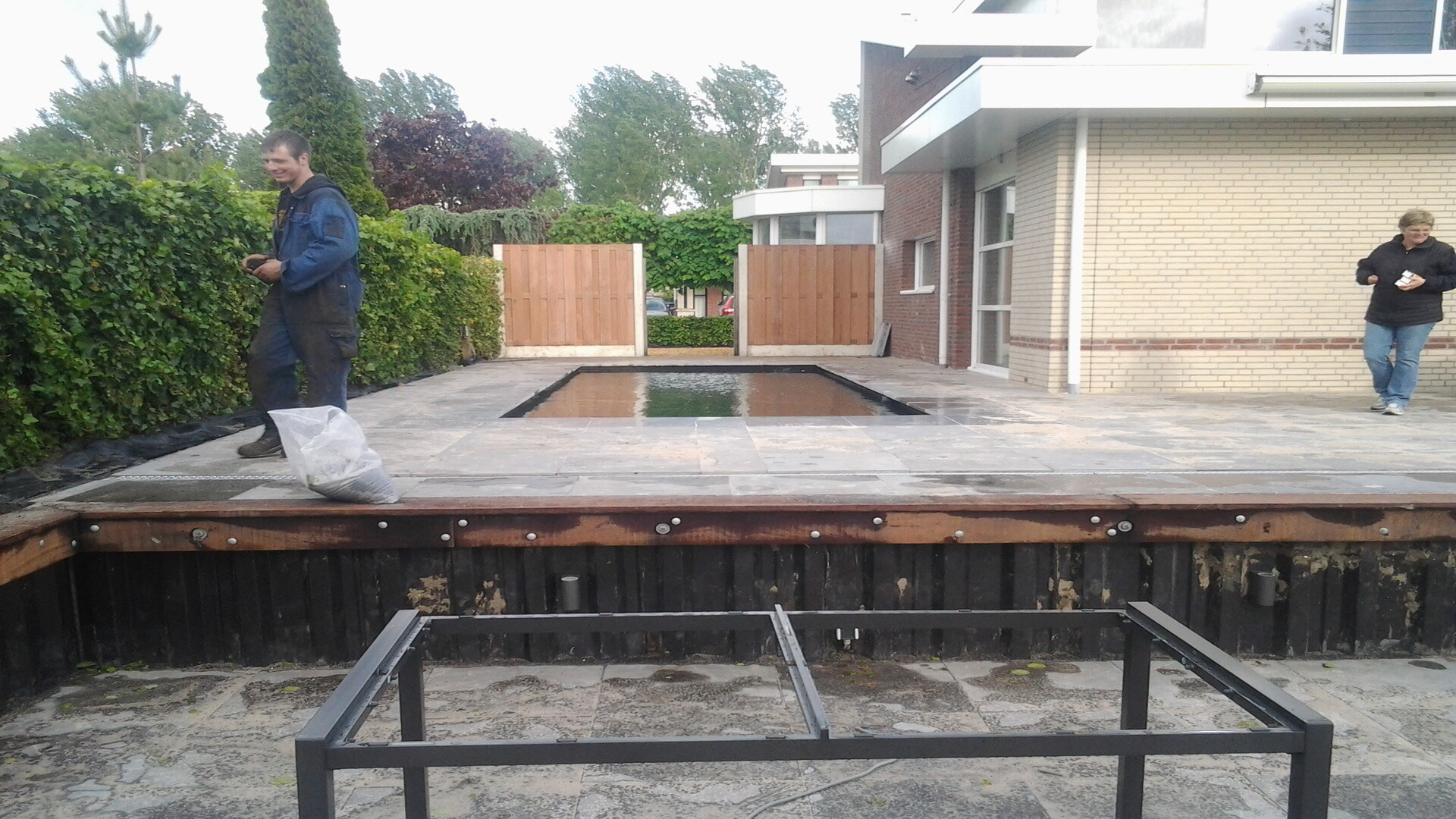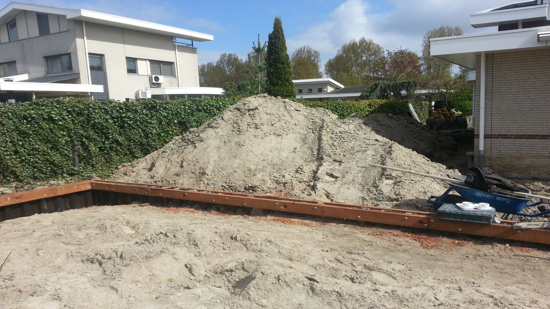 Drie jaar geleden heeft deze klant zijn hele tuin laten vernieuwen. Echter, al snel bleek dat dit niet goed was gedaan. De waterhuishouding was niet goed geregeld (er bleven plassen staan) en de beschoeiing was niet goed geplaatst, waardoor deze krom en naar buiten was getrokken. Het was duidelijk dat hier een oplossing voor moest komen.