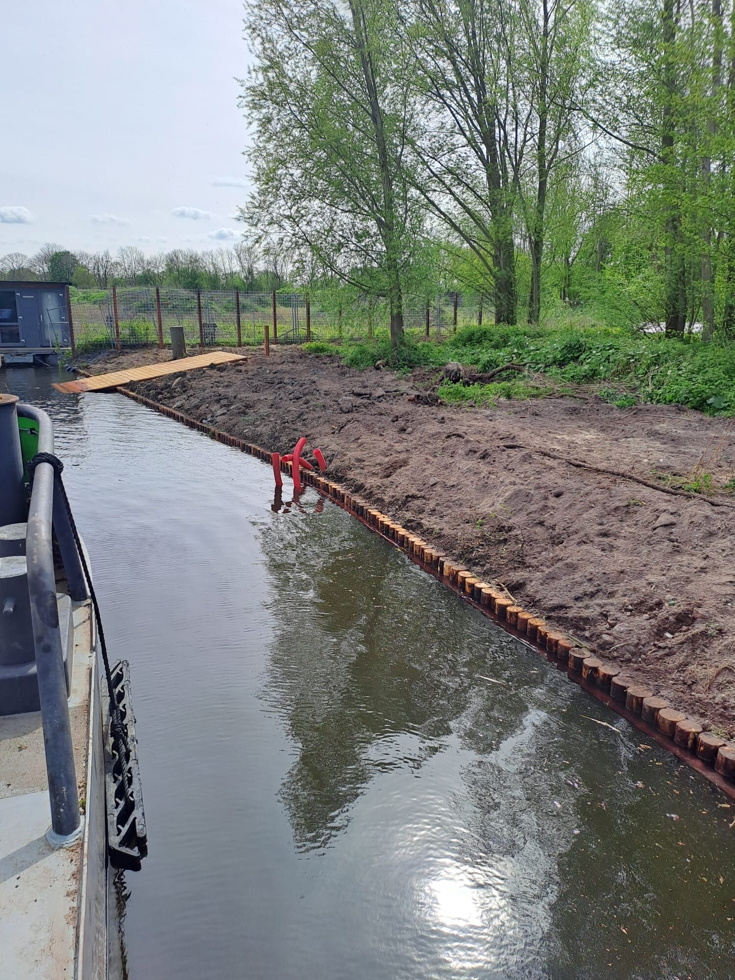 Langs de Vecht realiseerden we een natuurlijke beschoeiing ten behoeve van de nieuwe ligplaats voor een woonark. Omdat het perceel vrij diep ligt, was een stevige oeverconstructie nodig. Tegelijk wilde de opdrachtgever de uitstraling zo natuurlijk mogelijk houden.