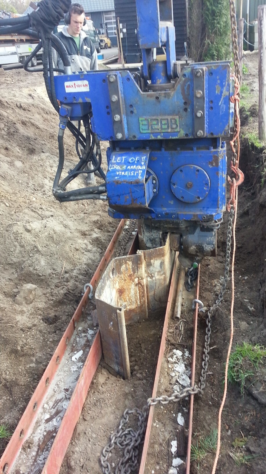 Om ervoor te zorgen dat de wand goed en op de juiste plek werd geplaatst, zijn er eerst twee stalen balken neergelegd. Zo was het duidelijk waar de wand geplaatst zou worden. Bovendien wordt het plaatsen van de damwand een stuk eenvoudiger. De balken dienen namelijk als een soort geleider van de damwand.