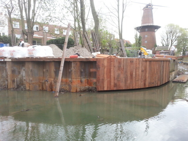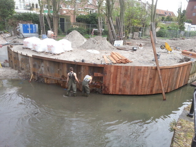 De gemeente Utrecht is bezig om een aantal grachten te voorzien van nieuwe damwanden. Daarvoor werken ze samen met verschillende bedrijven in de regio. Voor dit project werkte Slootweg samen met een aannemer die een stalen damwand heeft geplaatst. Vervolgens is Slootweg gevraagd om de afwerking te verzorgen. De afwerking bestond uit een hardhouten damwand die aan de stalen damwand gemonteerd moest worden. De overheid vraagt altijd om gebruik te maken van FSC®-gecertificeerd hardhout. Dit is een keurmerk dat aantoont dat het hout op een milieuvriendelijke manier worden vervaardigd*.