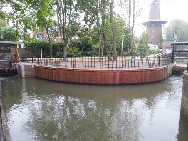 Voor deze opdracht heeft Slootweg ook de stuw gemaakt die aan de zijkant zit. Een leuk detail dat is toegevoegd, zijn de trapjes voor de eenden (die stonden zo in het bestek). Zo kunnen ze eenvoudig in en uit het water komen. Natuurlijk zijn deze door Slootweg zelf gemaakt.