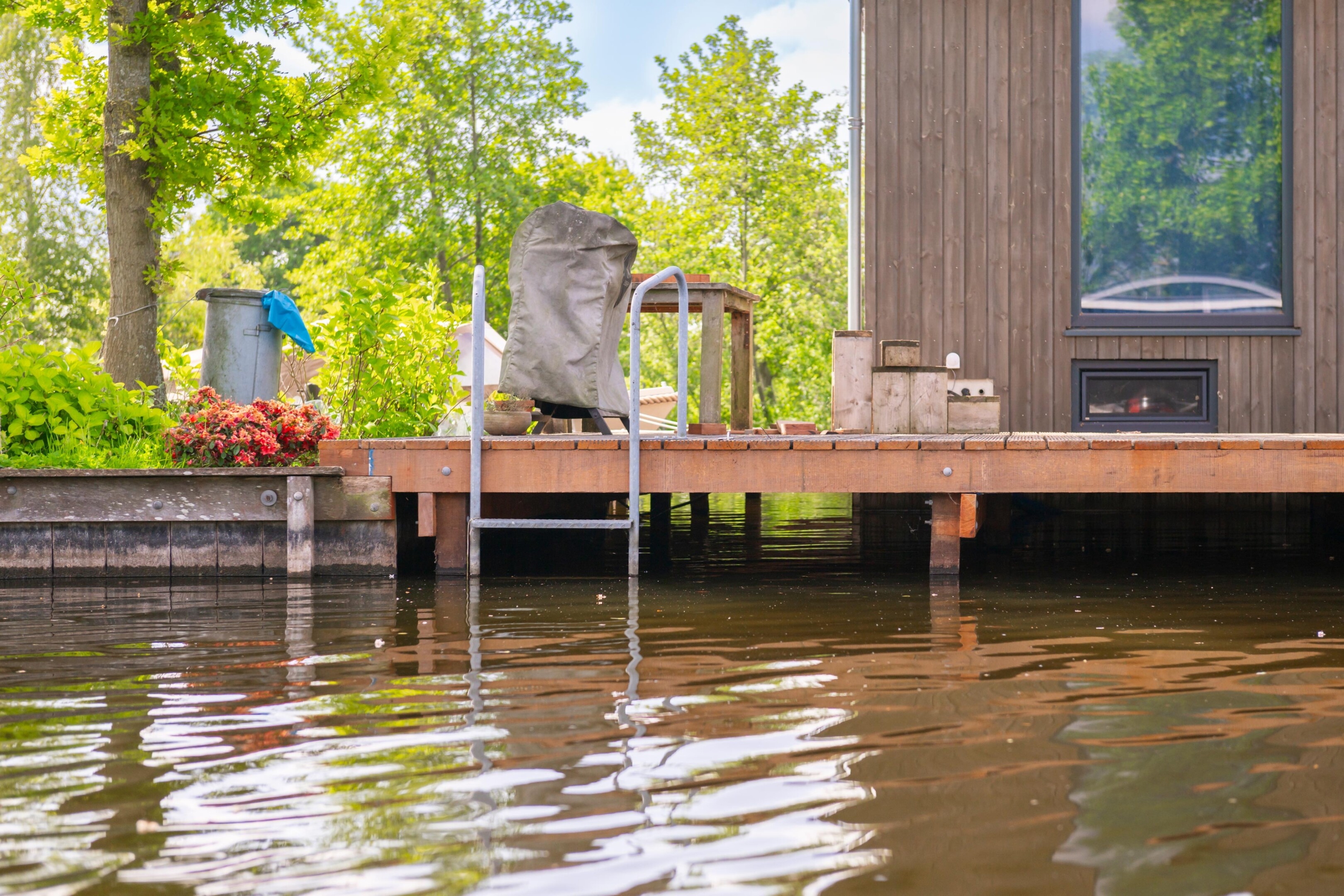Tussen twee eilanden en langs een woonark is het bestaande steigerterras volledig vernieuwd. De onderbouw was verrot en is vervangen, waarna de oorspronkelijke dekdelen opnieuw zijn gemonteerd. Het resultaat: een veilige, nette constructie met hergebruik van materiaal waar mogelijk.