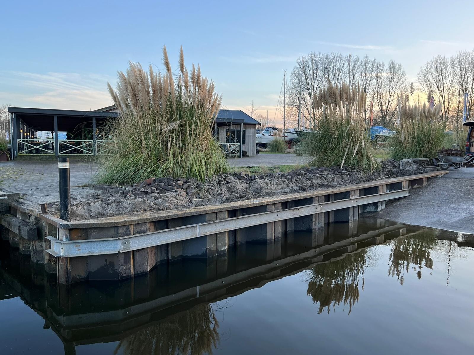 In Jachthaven Naarden voerden we een grootschalig onderhoudsproject uit aan de oeverconstructies en ligplaatsen. De bestaande damwand verkeerde in slechte staat en is volledig vervangen door een nieuwe hardhouten variant – duurzaam, degelijk en bestand tegen dagelijks gebruik in de haven.