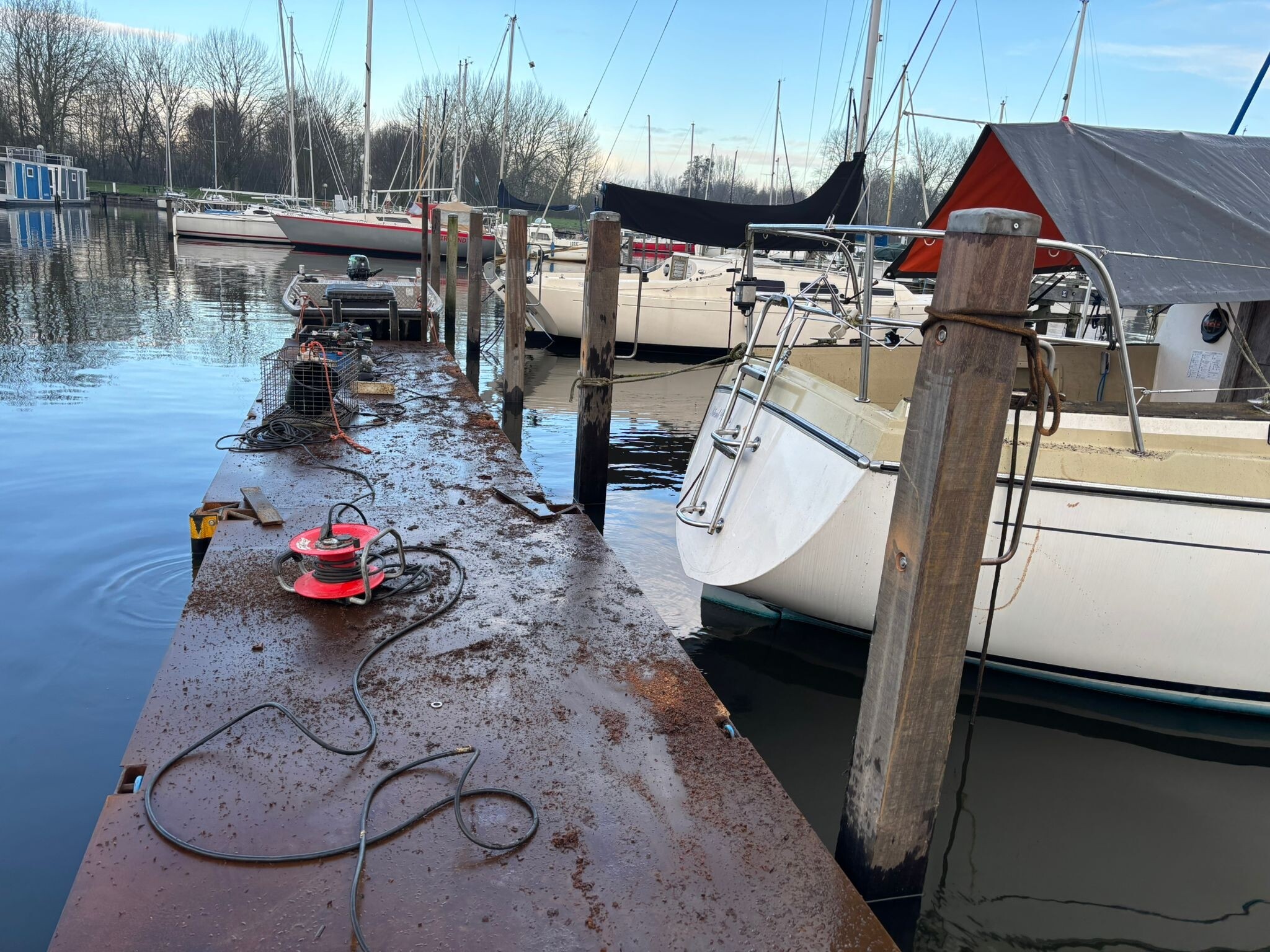 Daarnaast zijn in het water maar liefst 160 meerpalen vervangen. Elke paal is voorzien van nieuwe beugels en paalmutsen, zodat de aanlegplaatsen er weer strak en betrouwbaar bijliggen.