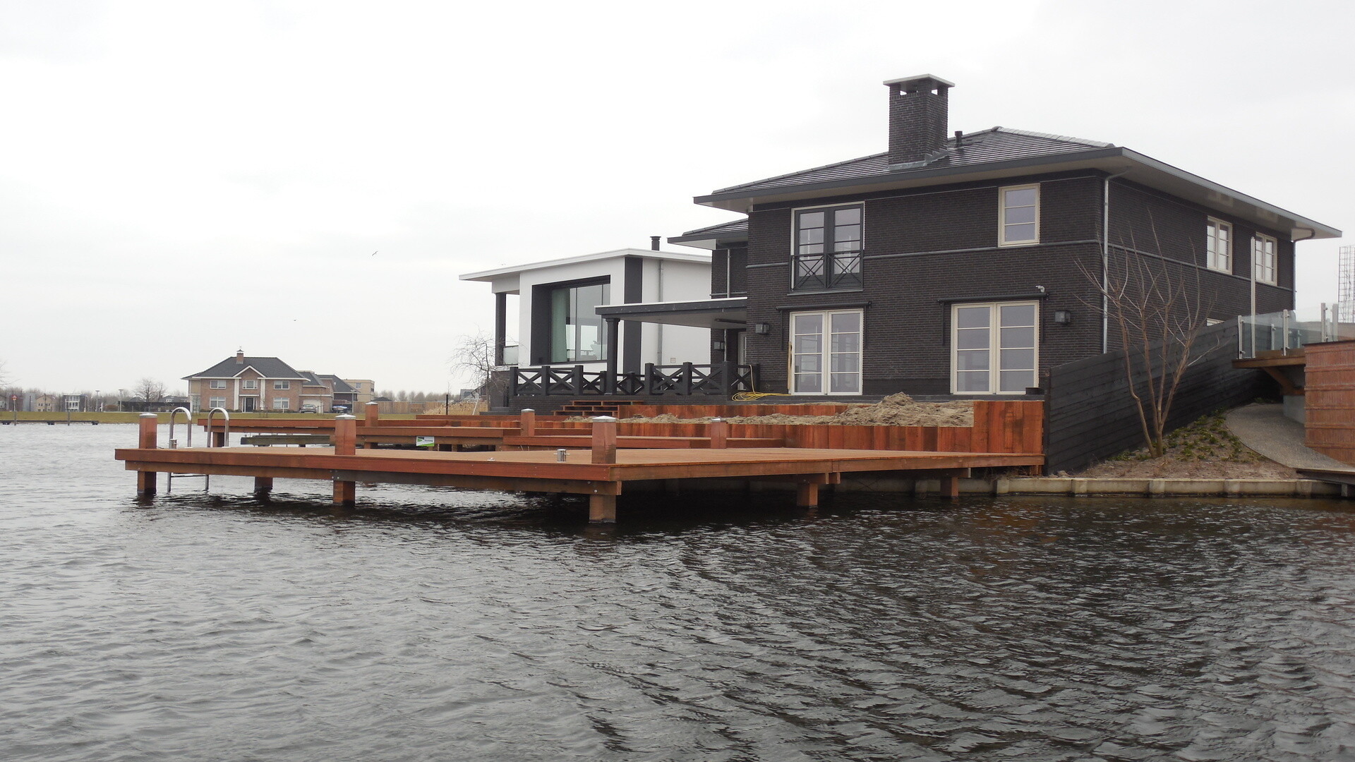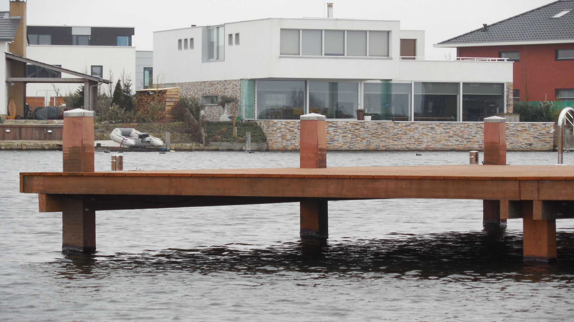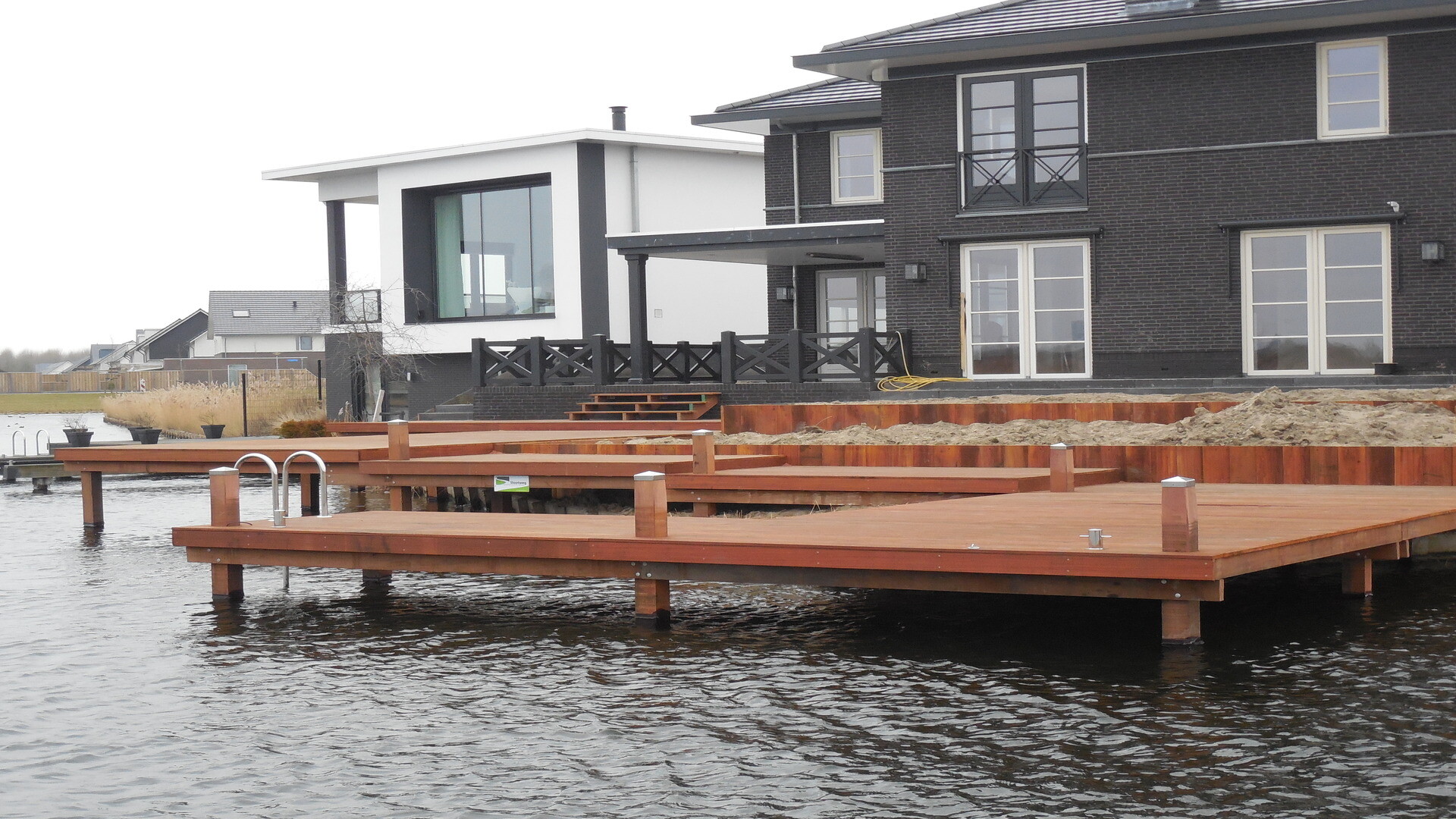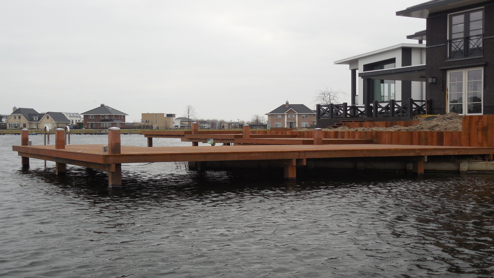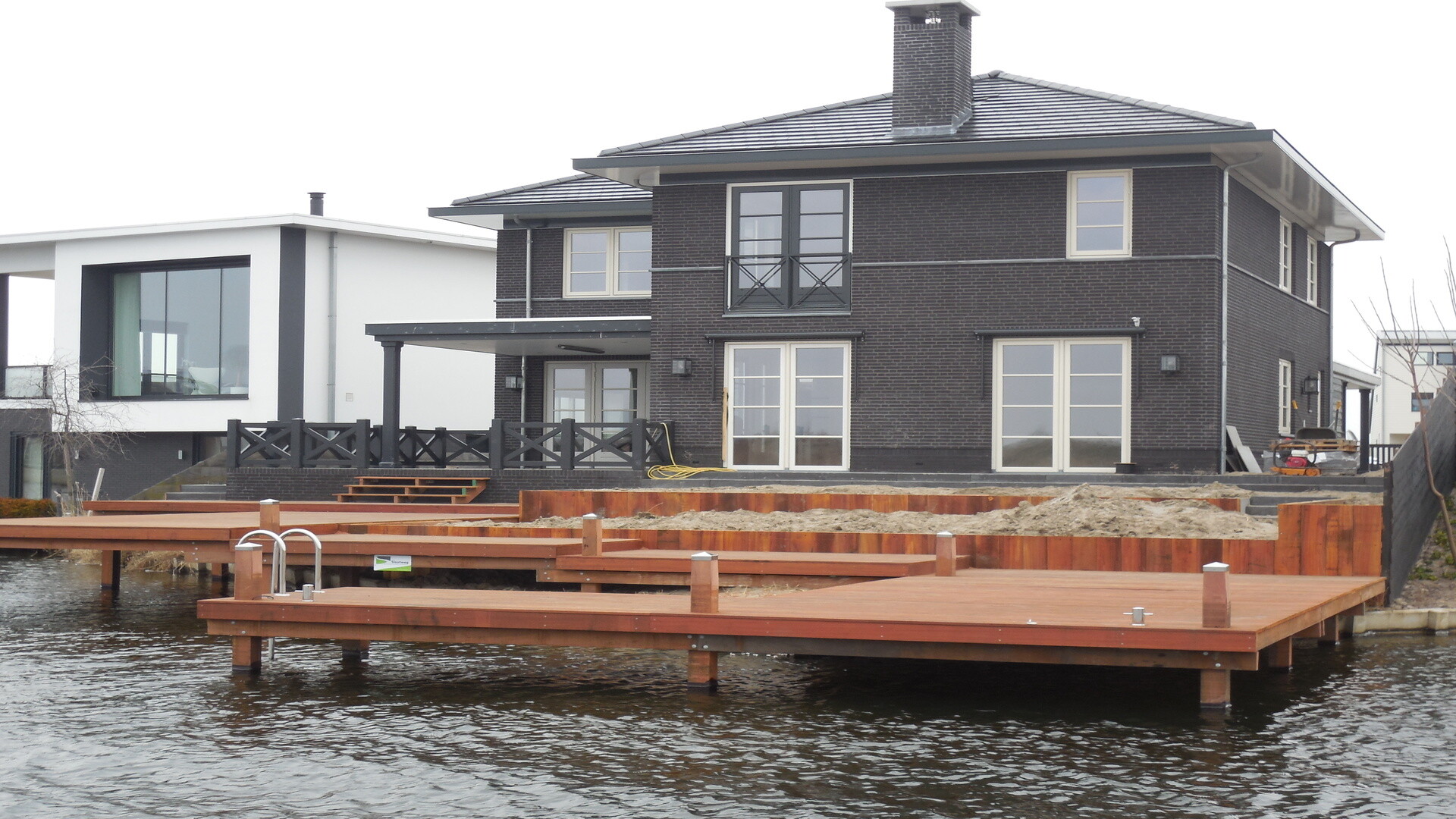Doordat er veel tijd is gestoken in het ontwerp, werd het plaatsen van de hardhouten vlonder en bijbehorende steiger een stuk eenvoudiger. Alles was goed getekend, dus wist iedereen precies wat er moest gebeuren. Het complexe ontwerp, er zaten namelijk vijf verschillende verdiepingen in, kon zo in twee weken tijd volledig worden afgerond.