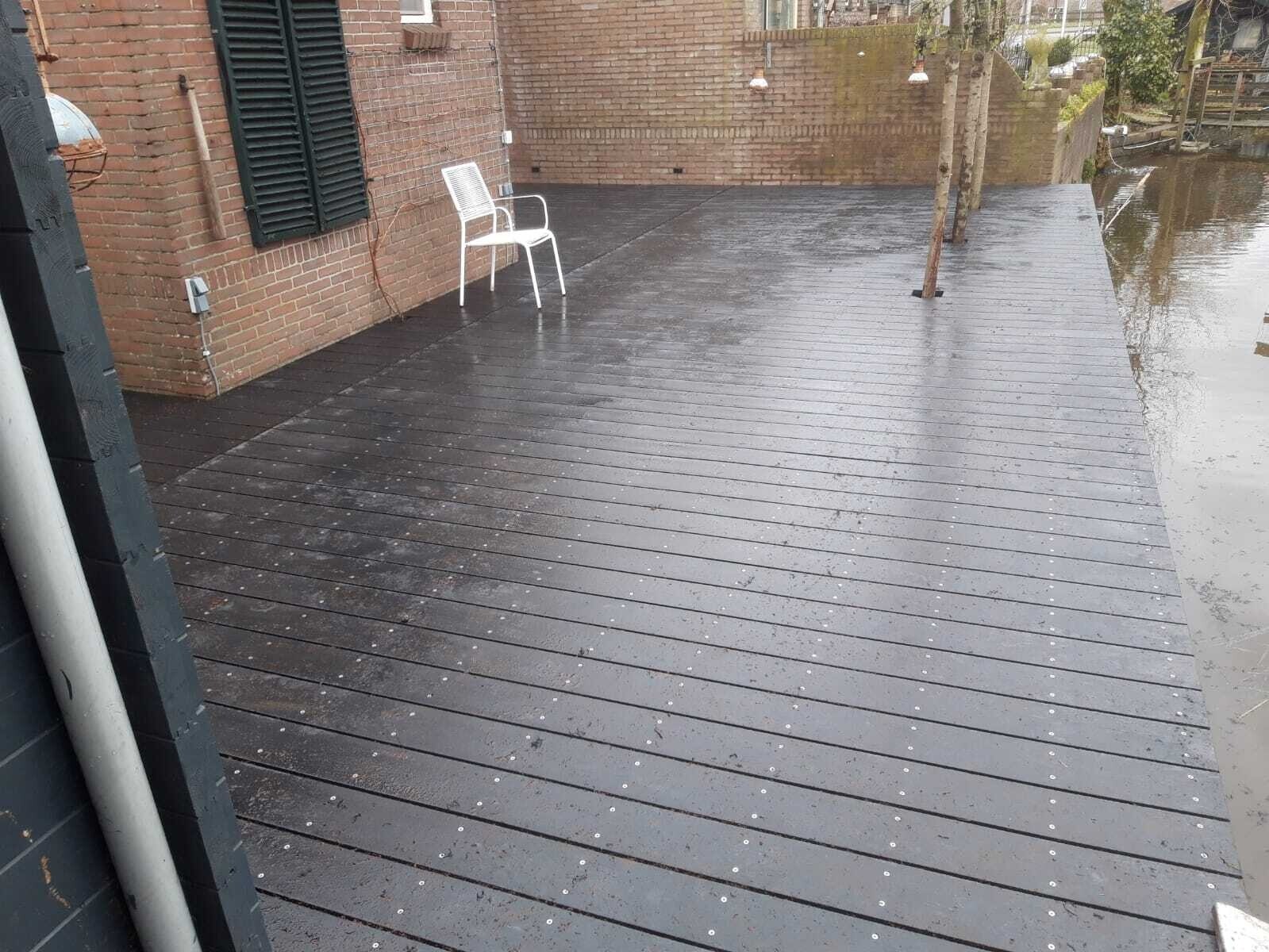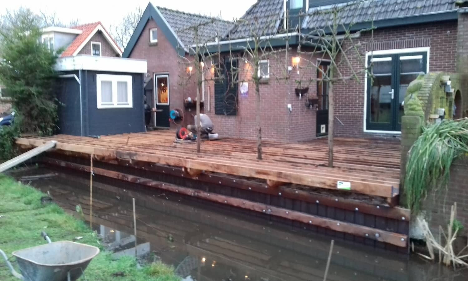 Met het oogpunt op minimale onderhoud voor langere periode hebben we de beschoeiing vervangen voor kunststof damwanden. Daarnaast hebben we ook een kunststof vlonder aangebracht en alles gefundeerd op 8m lange palen. Op deze manier staat alles op een harde laag, wat verzakking voorkomt.
